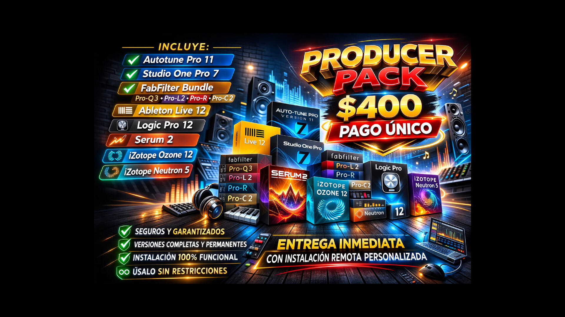 Incluye: Pro-Q3, Pro-Q4, Saturn 2, Promb, Pro-L2, Pro-C2, Pro-R, entre otros. Mezcla y masterización de alto nivel. Suite ultra precisa para ecualización, compresión distorsión, reverb, limitación y más. Interfaz limpia y analítica, ideal para ingenieros exigentes.
